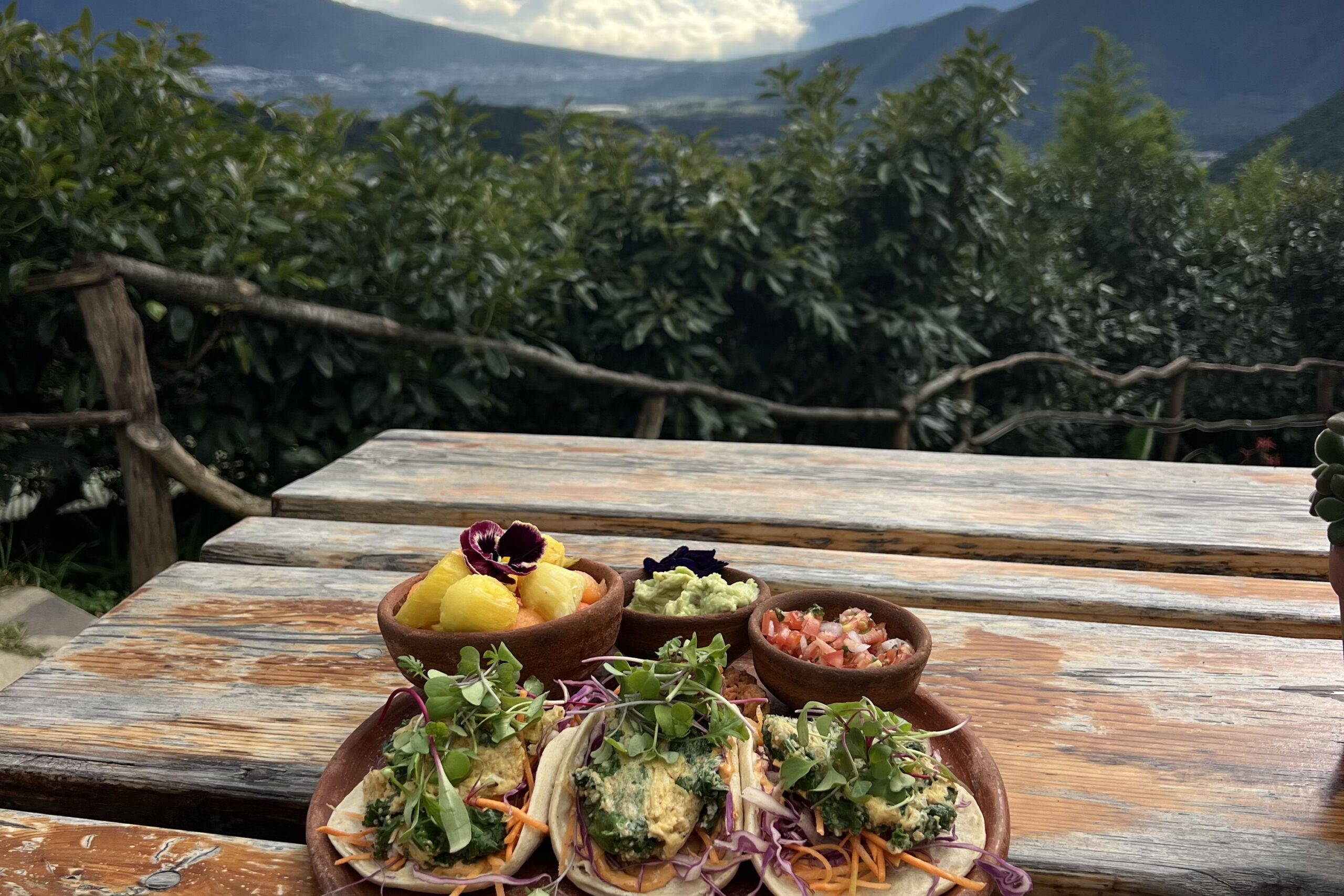 Our retreat home, Earth Lodge, is tucked into the hills just outside of Antigua, offering epic panoramic views of the surrounding volcanoes and the city below. You can see an active volcano, Fuego, erupt from the lodge! It’s a unique, eco-friendly mountain lodge surrounded by avocado trees and lush greenery that instantly brings a sense of bliss. The views from the yoga shala are unbeatable. Earth Lodge is also known for its delicious, healthy, farm-to-table meals prepared with fresh, local ingredients that nourish the body and soul.